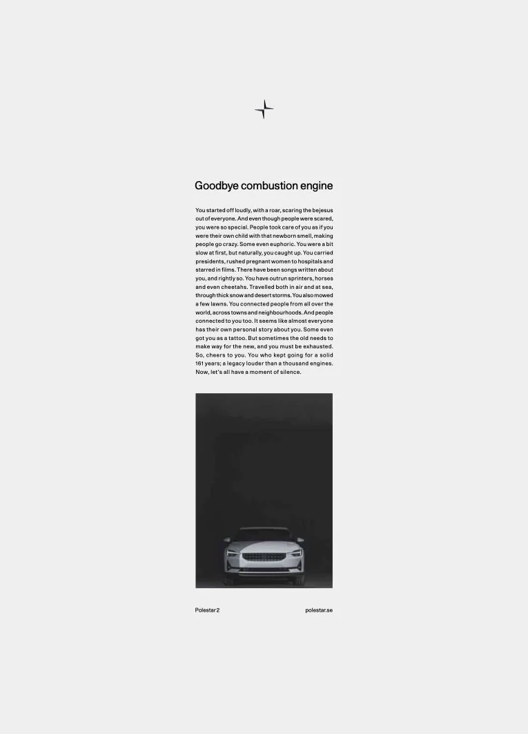 Car advertising has long been stuck in the status quo of macho stereotypes and sleek shots in 45-degree angles. For the launch of the Polestar 2, we wanted to embody the ethos of the car and challenge the conventions within its industry. The solution was the concept of Goodbye Normal that bid farewell to harmful industry standards.
